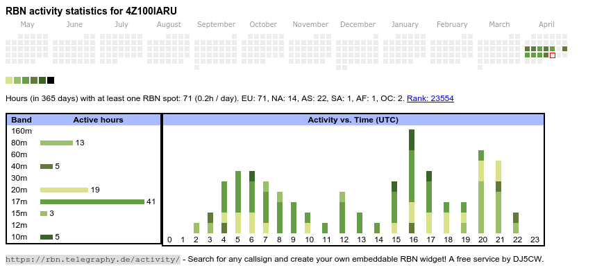 <a href="https://rbn.telegraphy.de/activity/4Z100IARU"><img src="https://rbn.telegraphy.de/activity/image/4Z100IARU"></a>