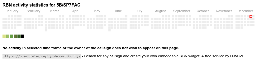 The heatmap shows the activity as reported by the RBN (CW/PSK/RTTY, no FT8) of the last 12 months. You can scroll back to January 2015.