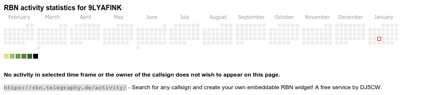 The heatmap shows the activity as reported by the RBN (CW/PSK/RTTY, no FT8) of the last 12 months. You can scroll back to January 2015.