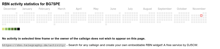 The heatmap shows the activity as reported by the RBN (CW/PSK/RTTY, no FT8) of the last 12 months. You can scroll back to January 2015.