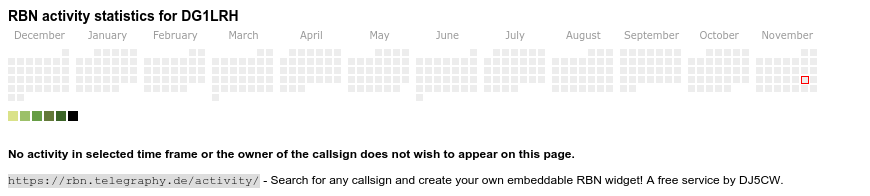 The heatmap shows the activity as reported by the RBN (CW/PSK/RTTY, no FT8) of the last 12 months. You can scroll back to January 2015.