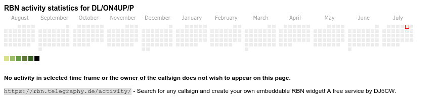 The heatmap shows the activity as reported by the RBN (CW/PSK/RTTY, no FT8) of the last 12 months. You can scroll back to January 2015.