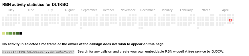 The heatmap shows the activity as reported by the RBN (CW/PSK/RTTY, no FT8) of the last 12 months. You can scroll back to January 2015.