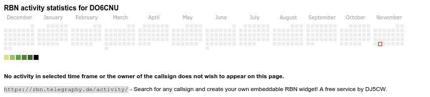 The heatmap shows the activity as reported by the RBN (CW/PSK/RTTY, no FT8) of the last 12 months. You can scroll back to January 2015.