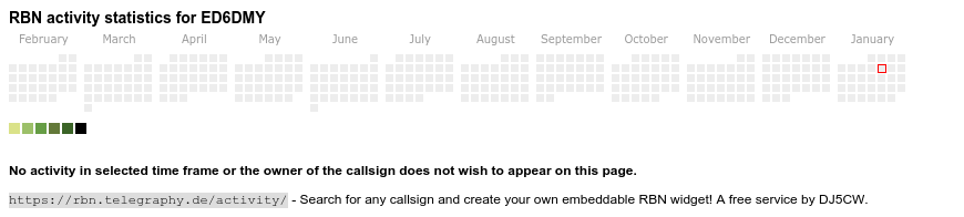 The heatmap shows the activity as reported by the RBN (CW/PSK/RTTY, no FT8) of the last 12 months. You can scroll back to January 2015.