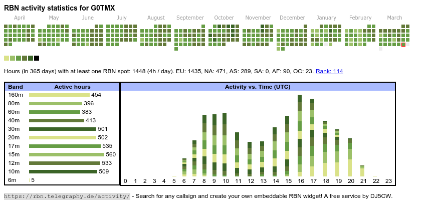 <a href="https://rbn.telegraphy.de/activity/G0TMX"><img src="https://rbn.telegraphy.de/activity/image/G0TMX"></a>