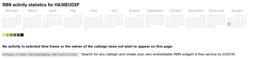 The heatmap shows the activity as reported by the RBN (CW/PSK/RTTY, no FT8) of the last 12 months. You can scroll back to January 2015.