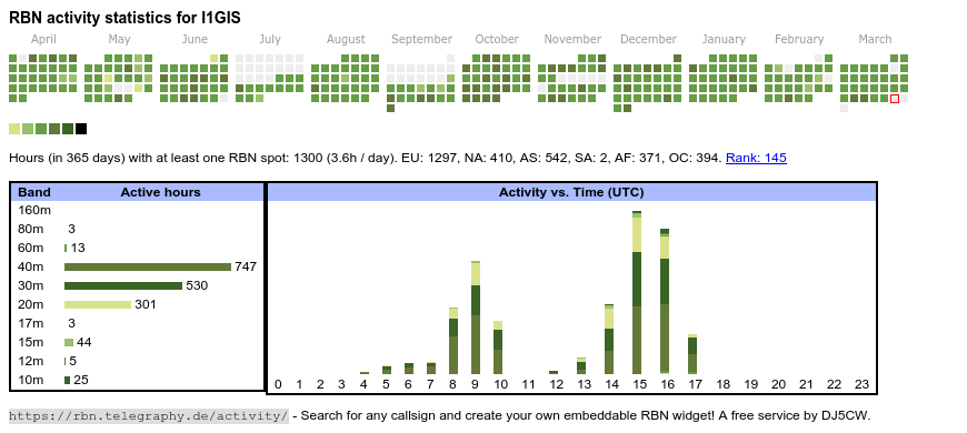 <a href="https://rbn.telegraphy.de/activity/I1GIS"><img src="https://rbn.telegraphy.de/activity/image/I1GIS"></a>