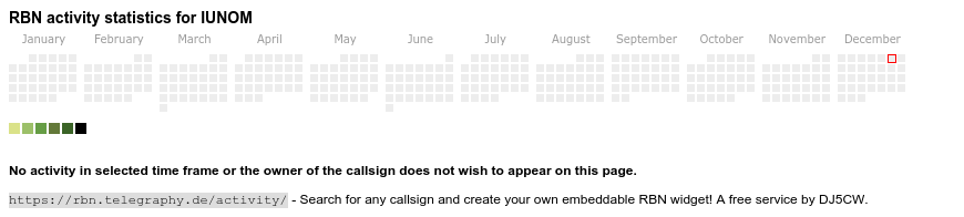 The heatmap shows the activity as reported by the RBN (CW/PSK/RTTY, no FT8) of the last 12 months. You can scroll back to January 2015.