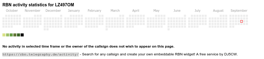 The heatmap shows the activity as reported by the RBN (CW/PSK/RTTY, no FT8) of the last 12 months. You can scroll back to January 2015.