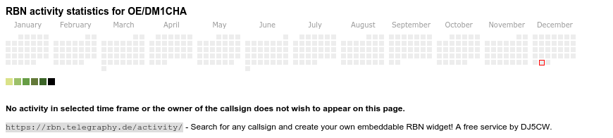 The heatmap shows the activity as reported by the RBN (CW/PSK/RTTY, no FT8) of the last 12 months. You can scroll back to January 2015.