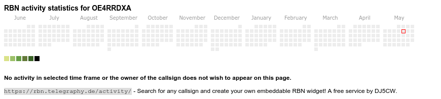 The heatmap shows the activity as reported by the RBN (CW/PSK/RTTY, no FT8) of the last 12 months. You can scroll back to January 2015.