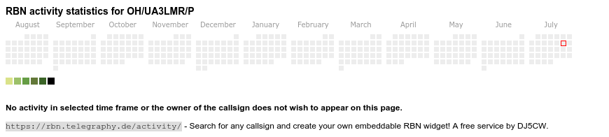 The heatmap shows the activity as reported by the RBN (CW/PSK/RTTY, no FT8) of the last 12 months. You can scroll back to January 2015.