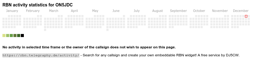 The heatmap shows the activity as reported by the RBN (CW/PSK/RTTY, no FT8) of the last 12 months. You can scroll back to January 2015.
