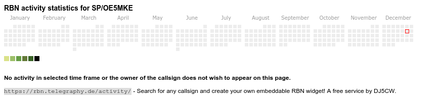 The heatmap shows the activity as reported by the RBN (CW/PSK/RTTY, no FT8) of the last 12 months. You can scroll back to January 2015.