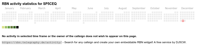 The heatmap shows the activity as reported by the RBN (CW/PSK/RTTY, no FT8) of the last 12 months. You can scroll back to January 2015.