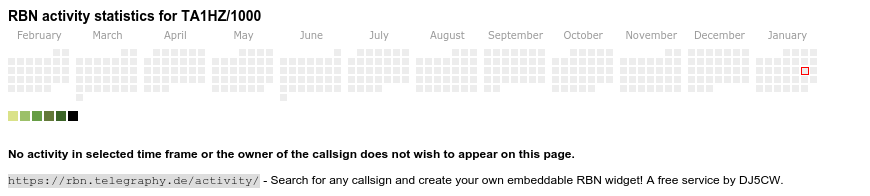 The heatmap shows the activity as reported by the RBN (CW/PSK/RTTY, no FT8) of the last 12 months. You can scroll back to January 2015.