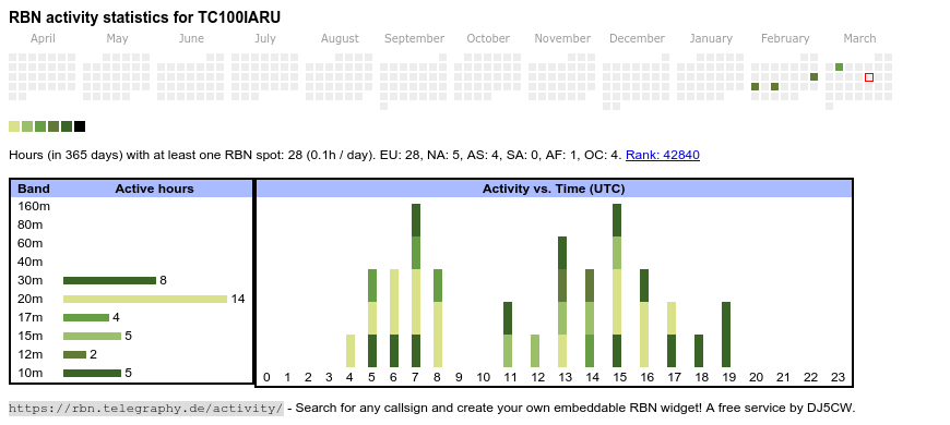 <a href="https://rbn.telegraphy.de/activity/TC100IARU"><img src="https://rbn.telegraphy.de/activity/image/TC100IARU"></a>