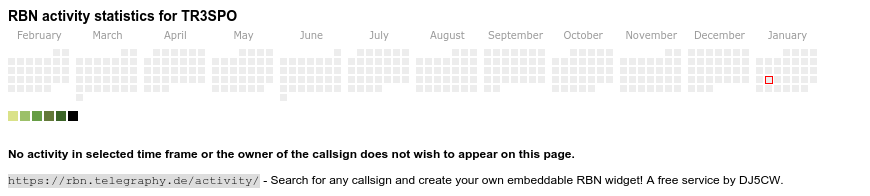 The heatmap shows the activity as reported by the RBN (CW/PSK/RTTY, no FT8) of the last 12 months. You can scroll back to January 2015.