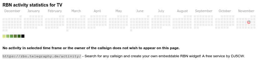 The heatmap shows the activity as reported by the RBN (CW/PSK/RTTY, no FT8) of the last 12 months. You can scroll back to January 2015.