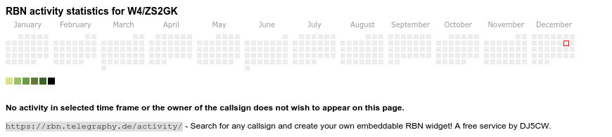 The heatmap shows the activity as reported by the RBN (CW/PSK/RTTY, no FT8) of the last 12 months. You can scroll back to January 2015.