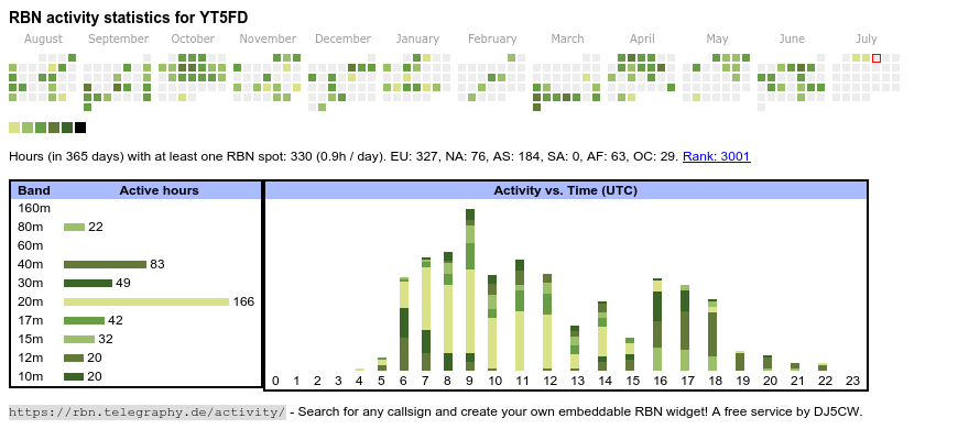 <a href="https://rbn.telegraphy.de/activity/YT5FD"><img src="https://rbn.telegraphy.de/activity/image/YT5FD"></a>